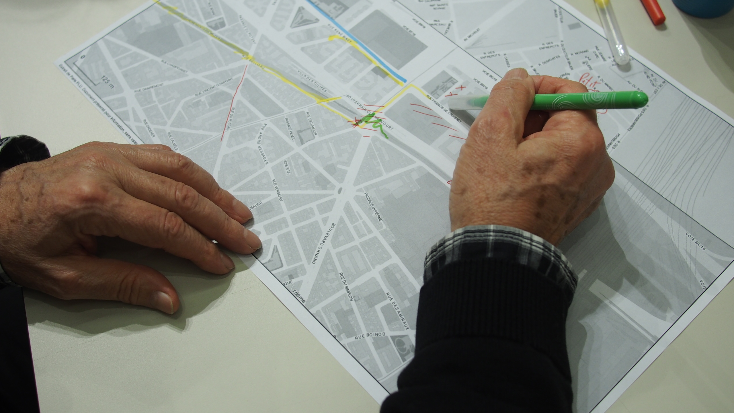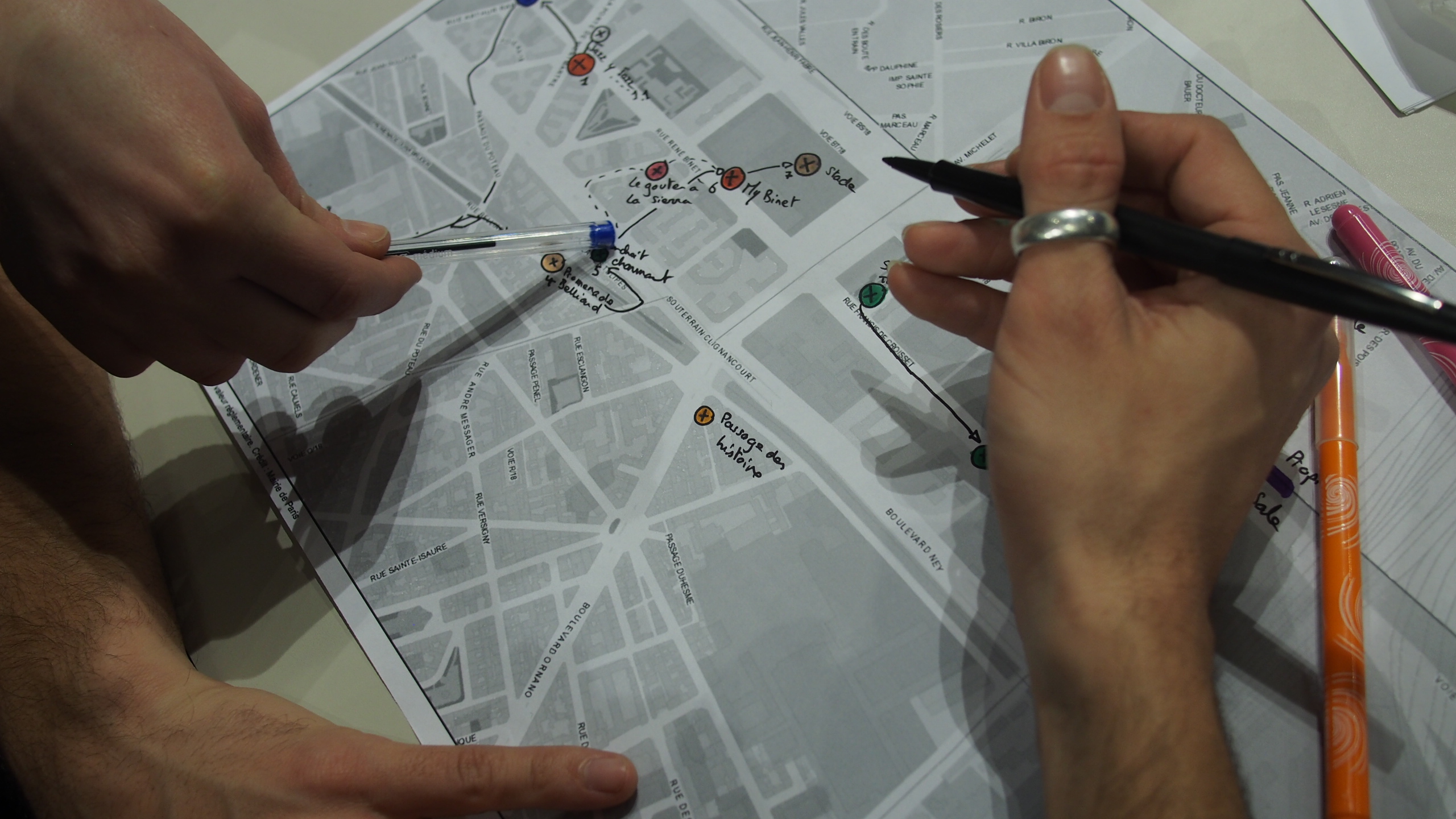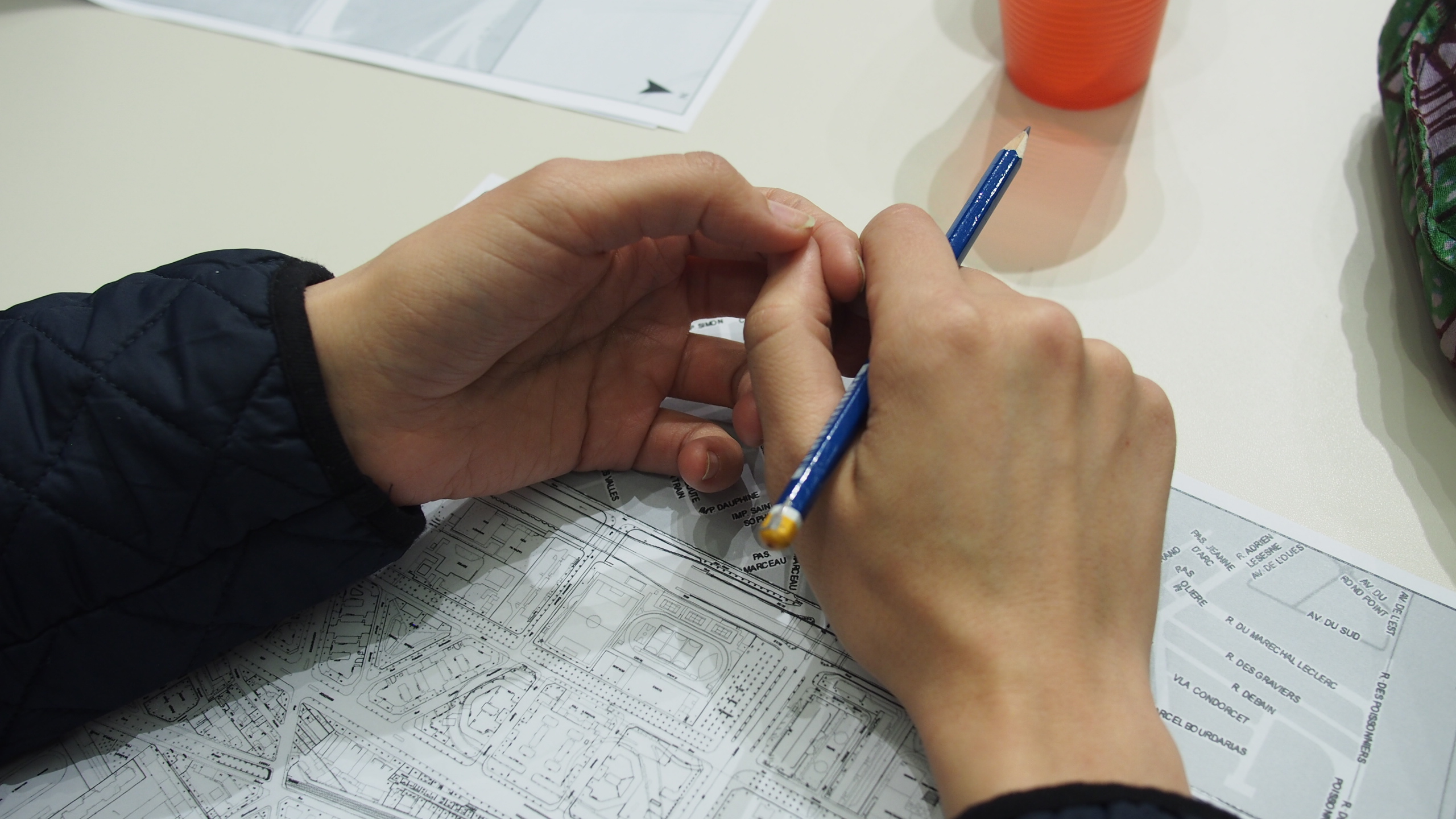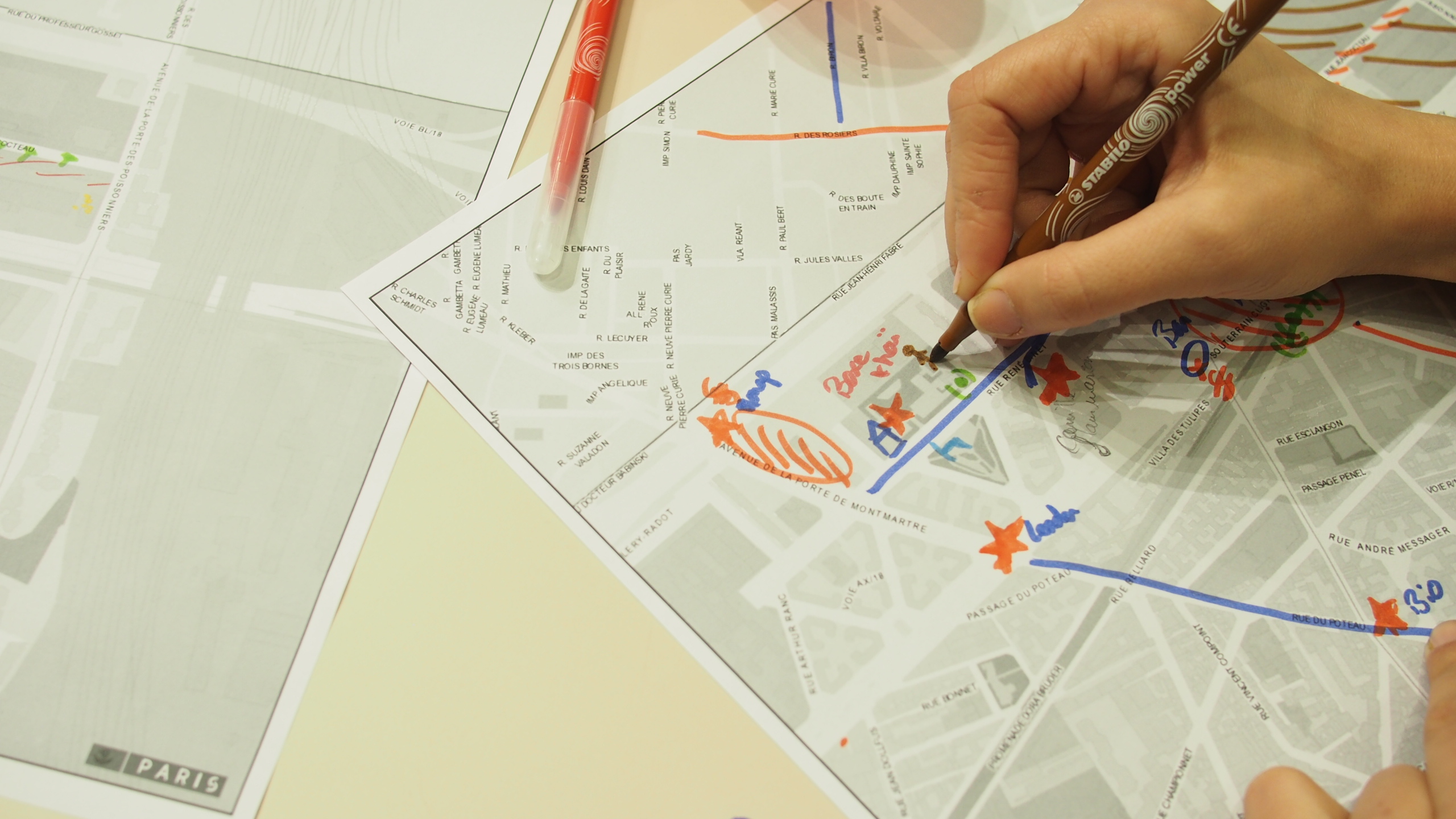 Ateliers de cartographie et de préparation au tournage avec les participantsAteliers mis en place avec la collaboration de la bibliothèque Jacqueline de Romilly (mairie de Paris), mars-avril 2017