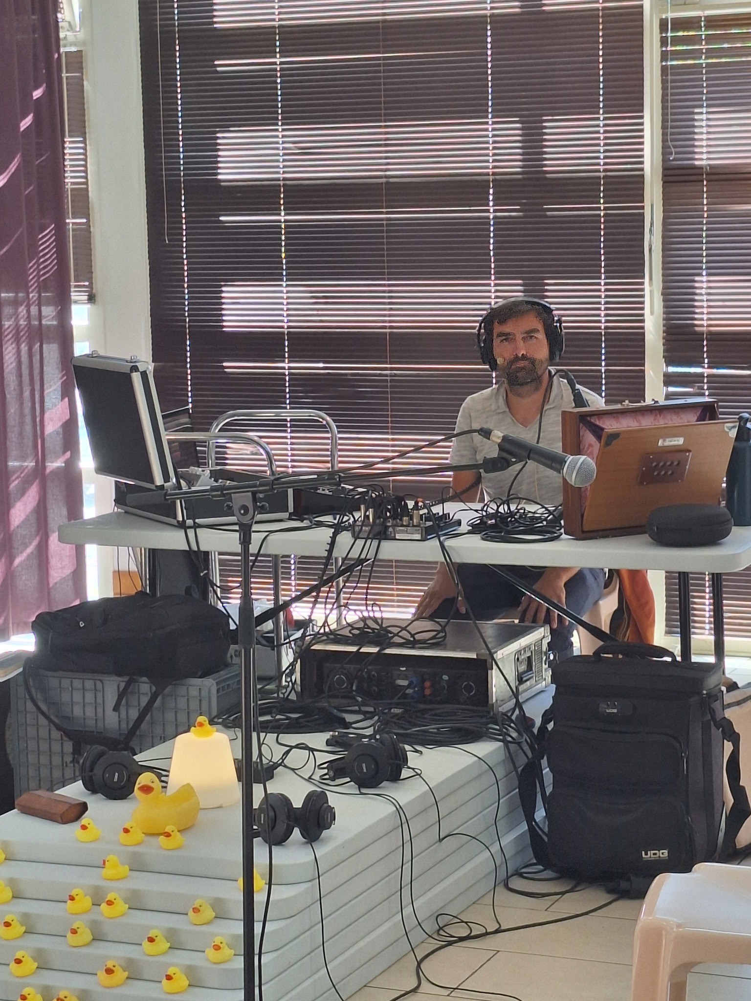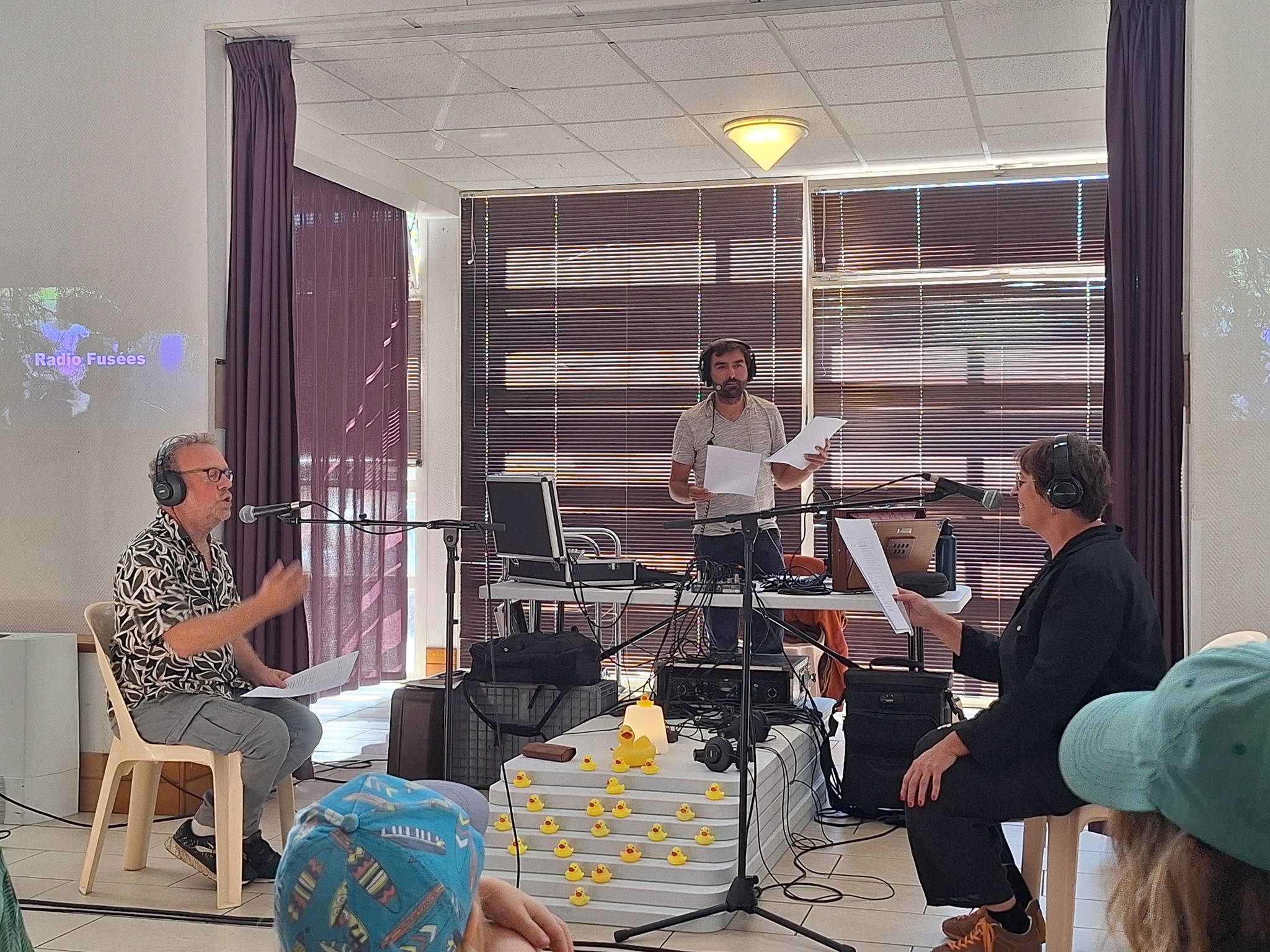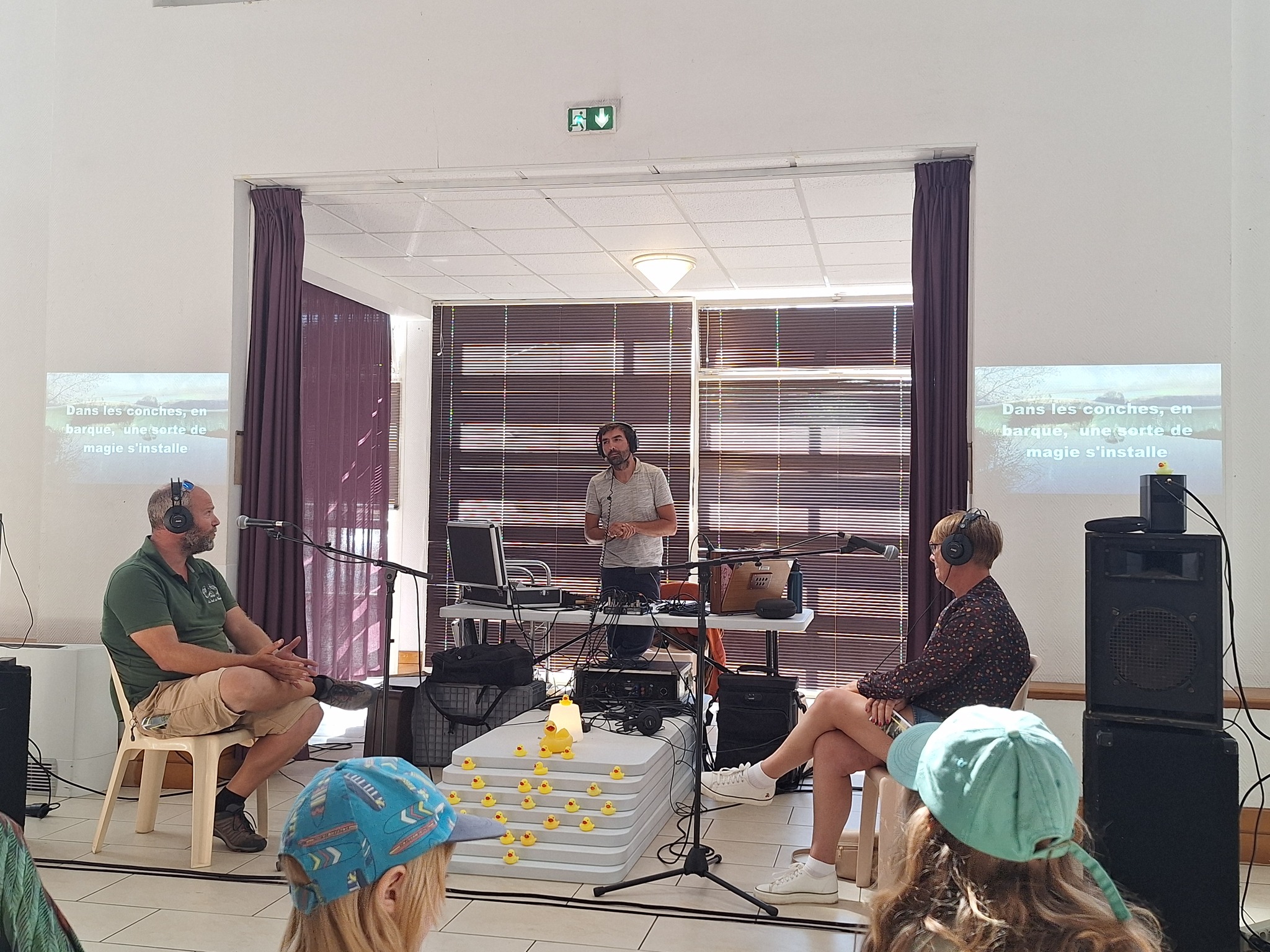 Navigation, marche, écoute, observation, temps de rencontre publics, de création in situ, à l’aube et au crépuscule... Nous avons collecté sons, images, objets, récits et sensations tout au long de notre voyage, inspiré par ce que nous traversons — mais aussi de ce qui nous traverse — pour créer des œuvres sensibles et immersives.